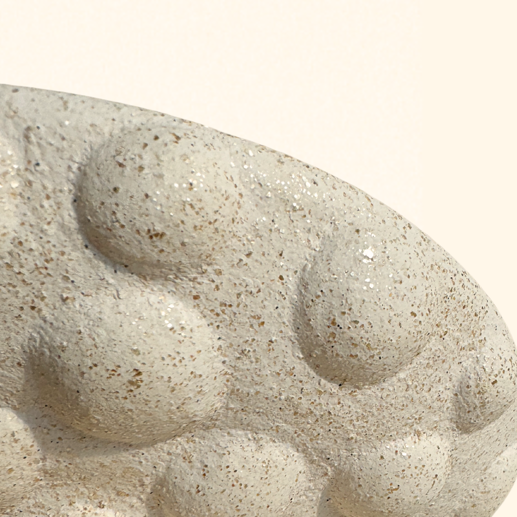 Organinė forma ir iškili faktūra kviečia prisiliesti. Šis indas suteikia erdvei tekstūros ir subtilios estetikos.