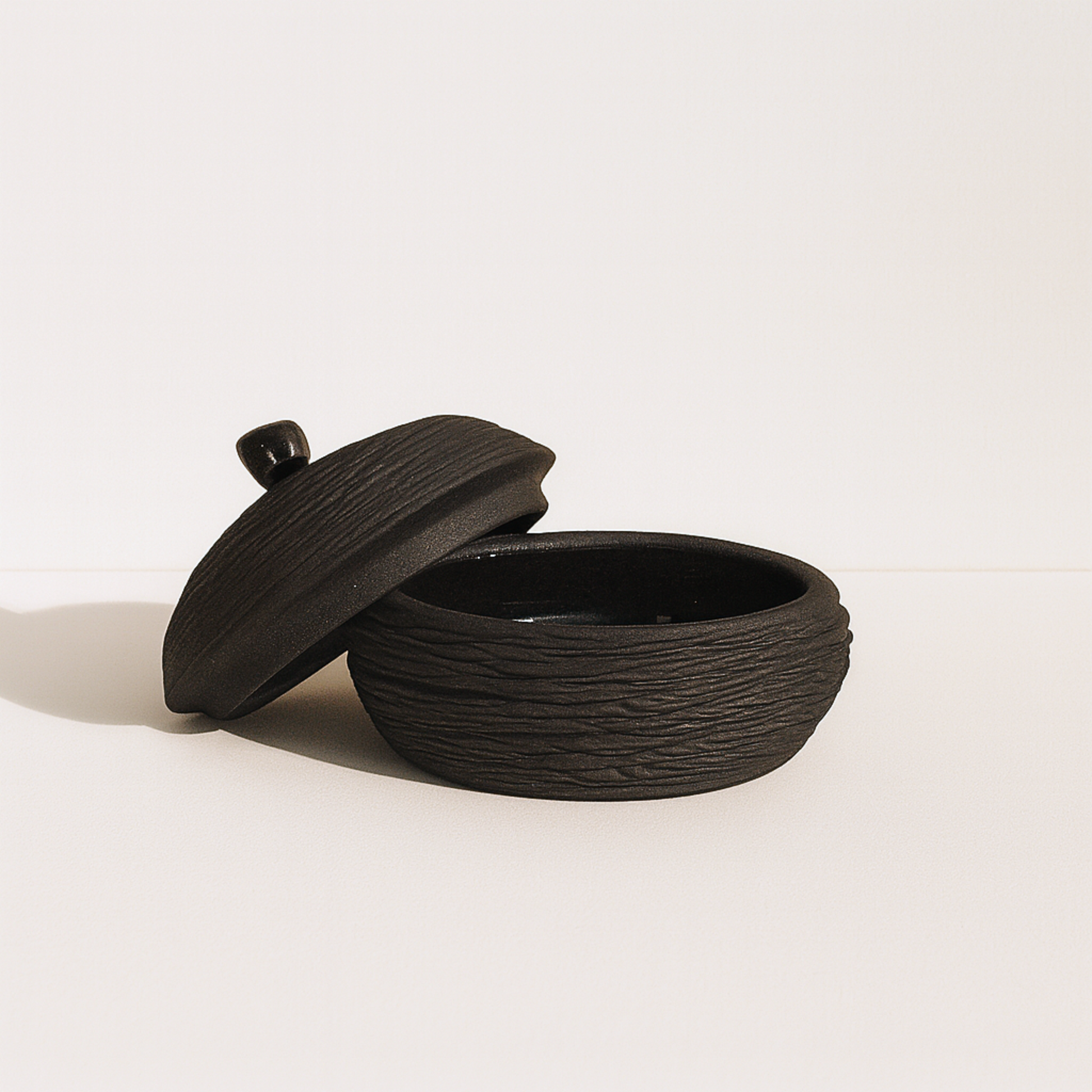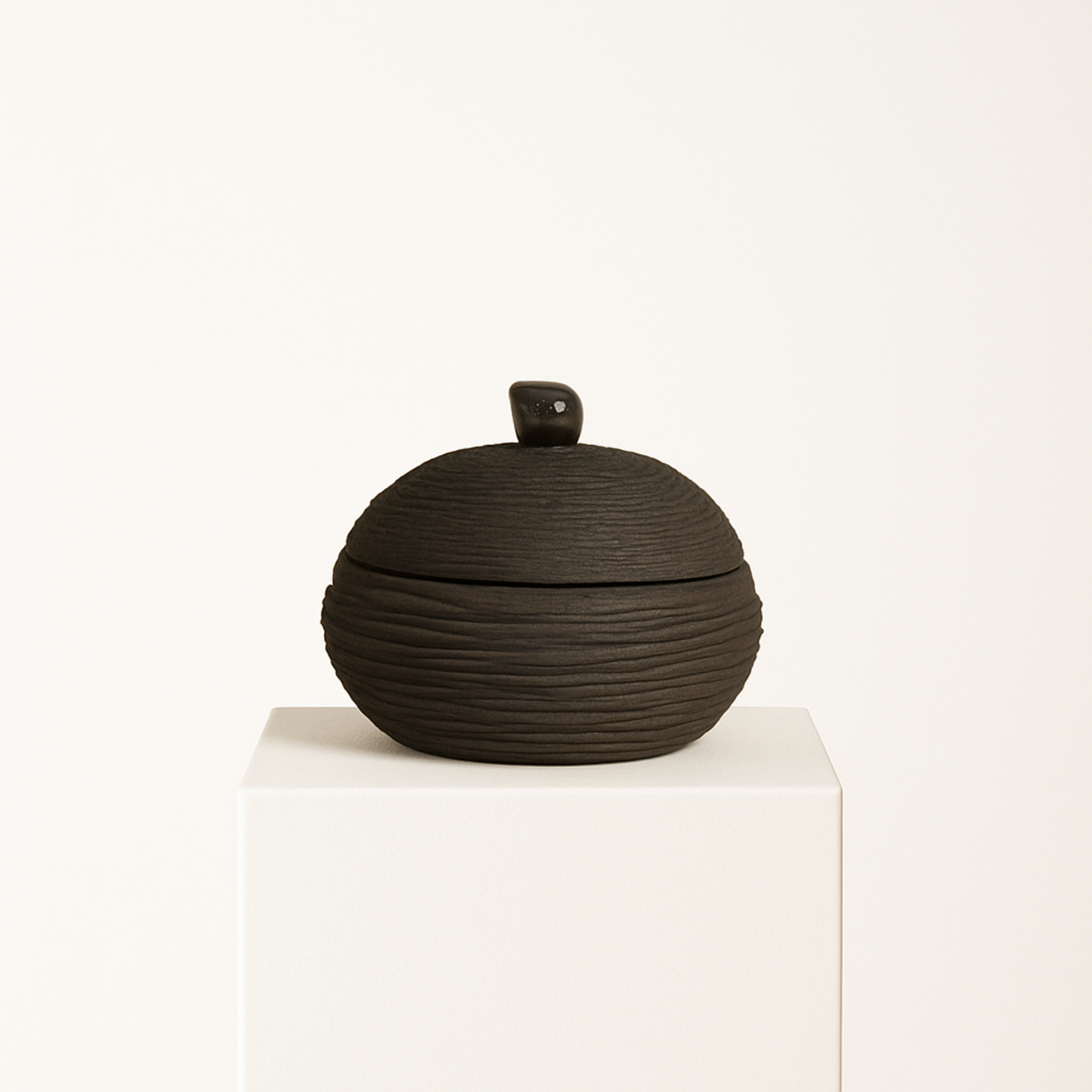 Paprasta, žemiška forma ir tekstūrinis paviršius primena rankose laikomą riešutą ar mažą sėklą. Talpus, bet jaukus – smulkmenoms ar paslaptims.