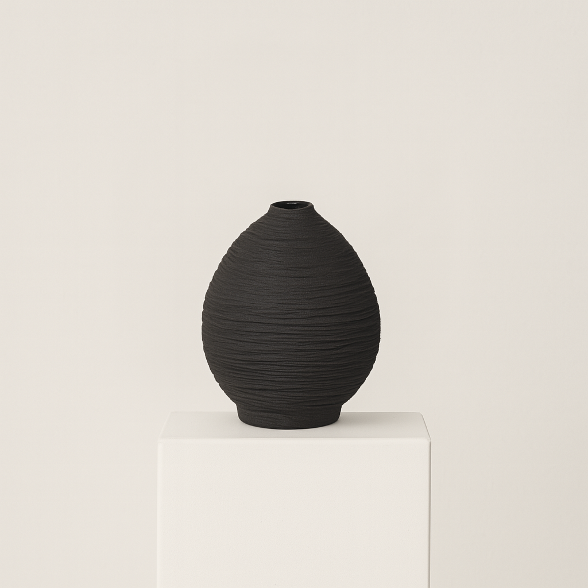 Tarsi iš molio gimęs vandens lašas. Ši vaza – rami, glaudi forma, kuri papildo erdvę švelnumu ir tylia elegancija.
