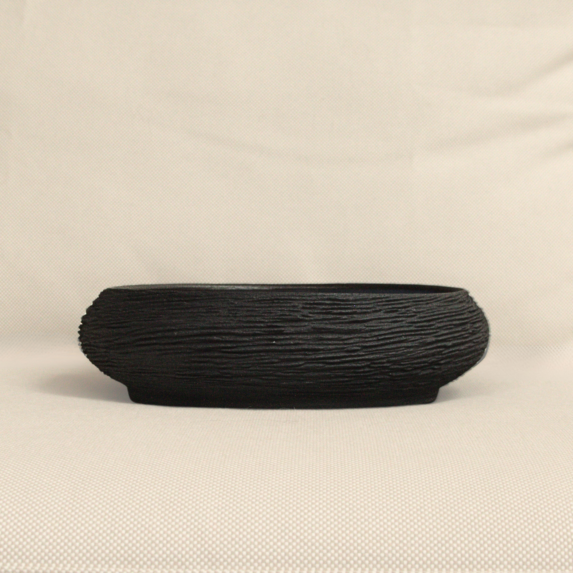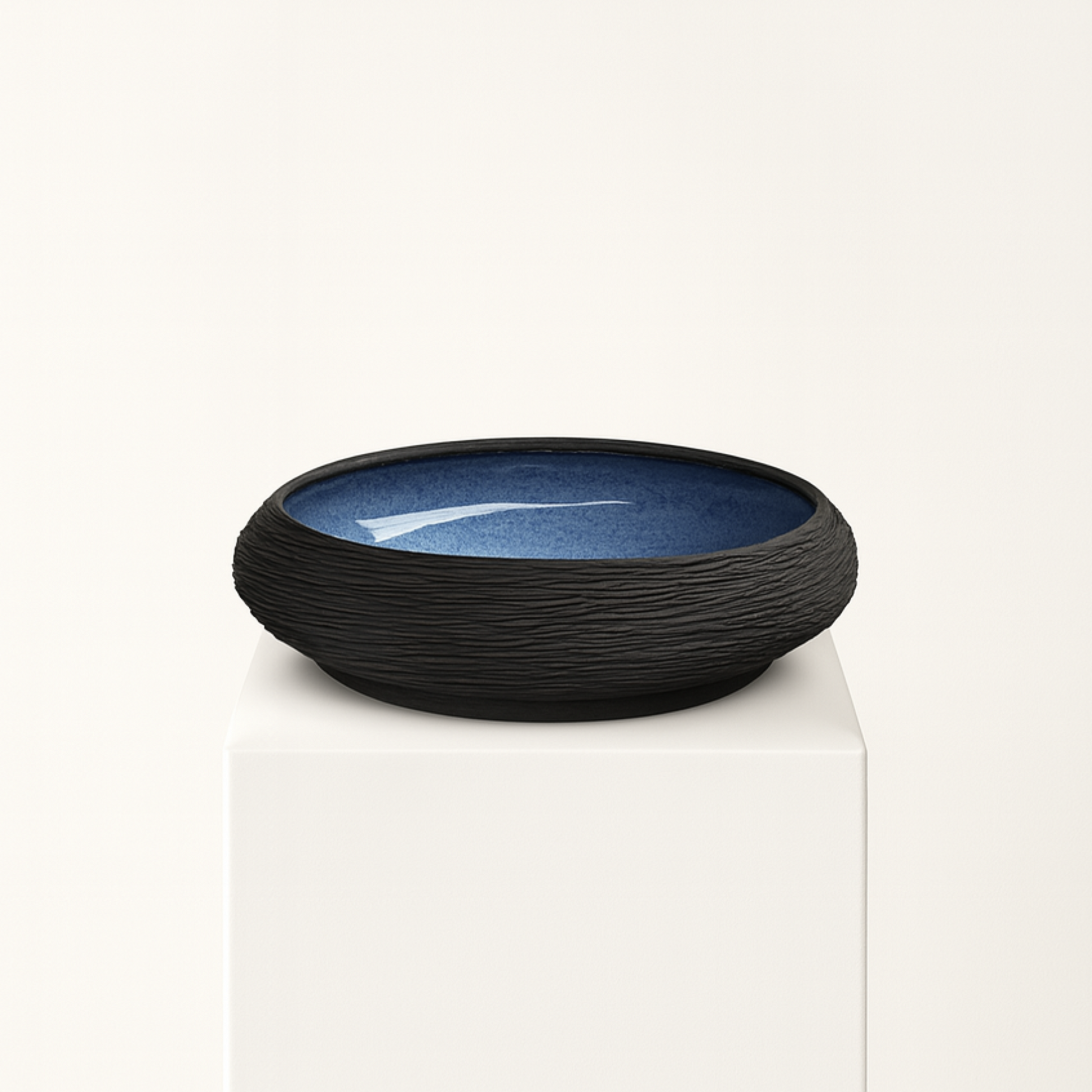 Dubenėlis, primenantis ramų ežero paviršių. Mėlynas vidus ir tamsus reljefinis kraštas sukuria tylų, jaukų akcentą namuose.